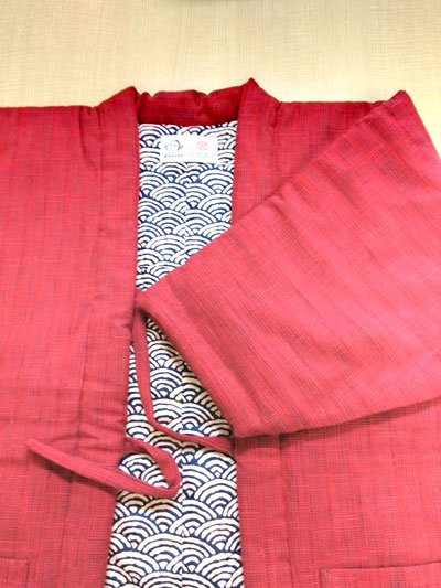 特に弊社のはんてんは、久留米織の生地におたふくわたの綿100%の布団綿を使用し ており、着用すると木綿ふとんのようなほっこりした温もりに包まれます。