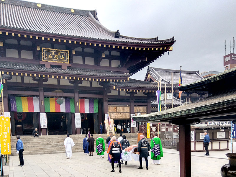 今年は令和8年3月19日に川崎大師駅前を御褥(大座布団)先頭に行列が出発し参道を通り大本堂へと運ばれました。
